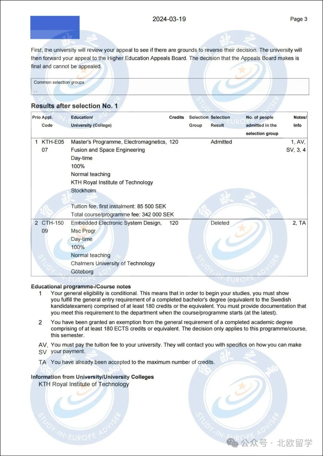 学生背景:中山大学,通信工程专业;录取院校与专业:瑞典皇家理工大学(通信工程硕士);