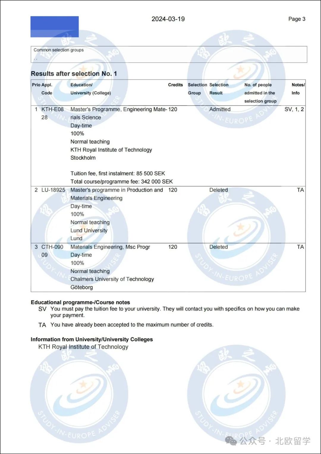 学生背景:北京科技大学,纳米材料与技术专业;GPA&语言成绩:GPA:80.8/100 ;雅思 7.0;录取院校&专业:瑞典皇家理工大学(纳米技术硕士(2025年秋季入学));