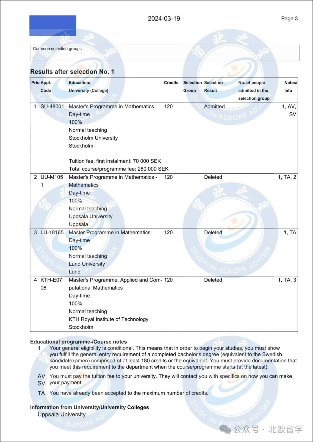 太原理工大学 软件工程专业,被瑞典皇家理工大学分布式系统软件工程硕士录取,学制2年;