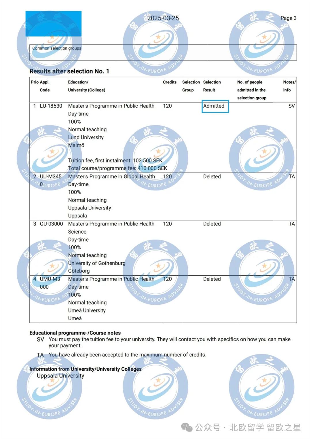 学生背景:北京中医药大学,针灸推拿学专业;录取院校与专业:瑞典隆德大学(公共卫生硕士);