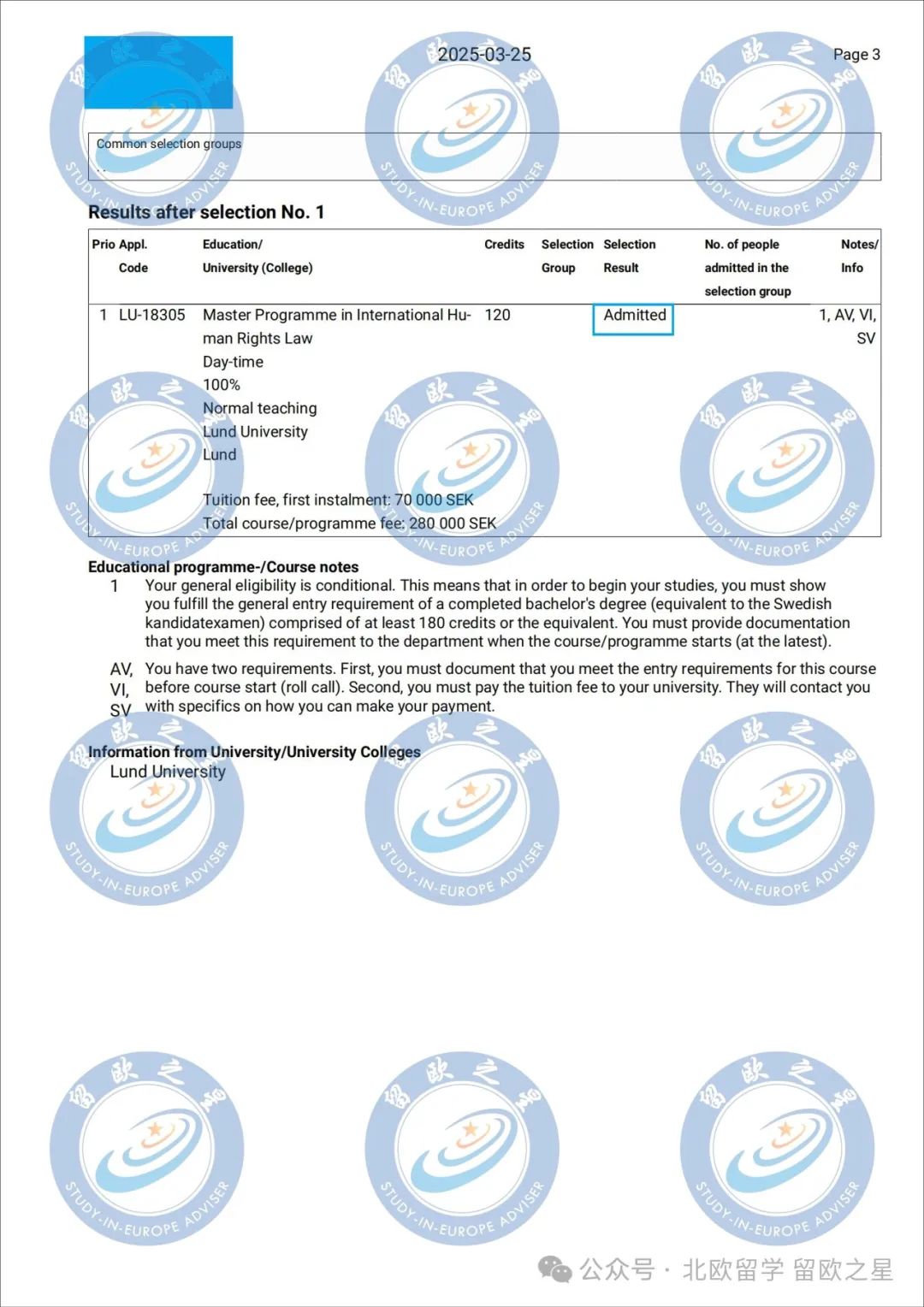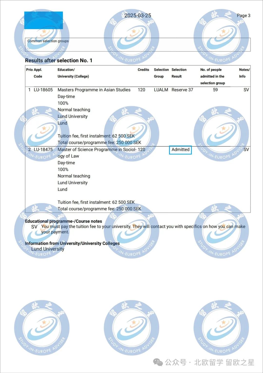 学生背景:天津大学,法学专业;录取院校与专业:瑞典隆德大学(欧洲国际贸易税法硕士);