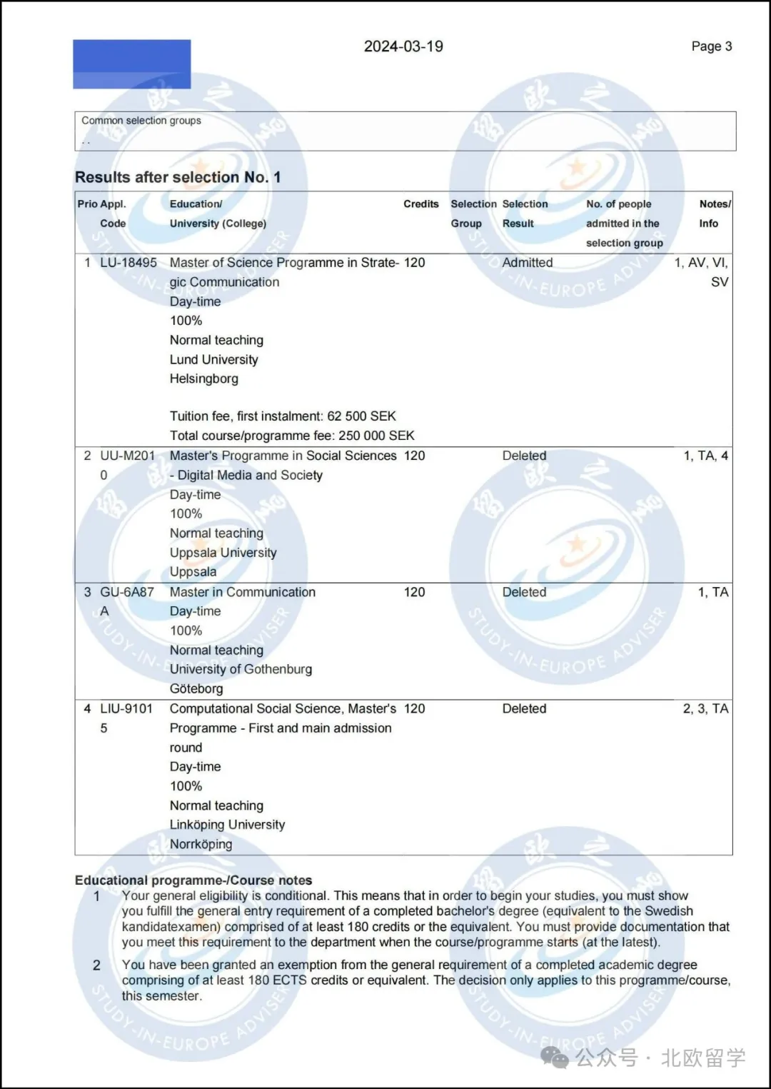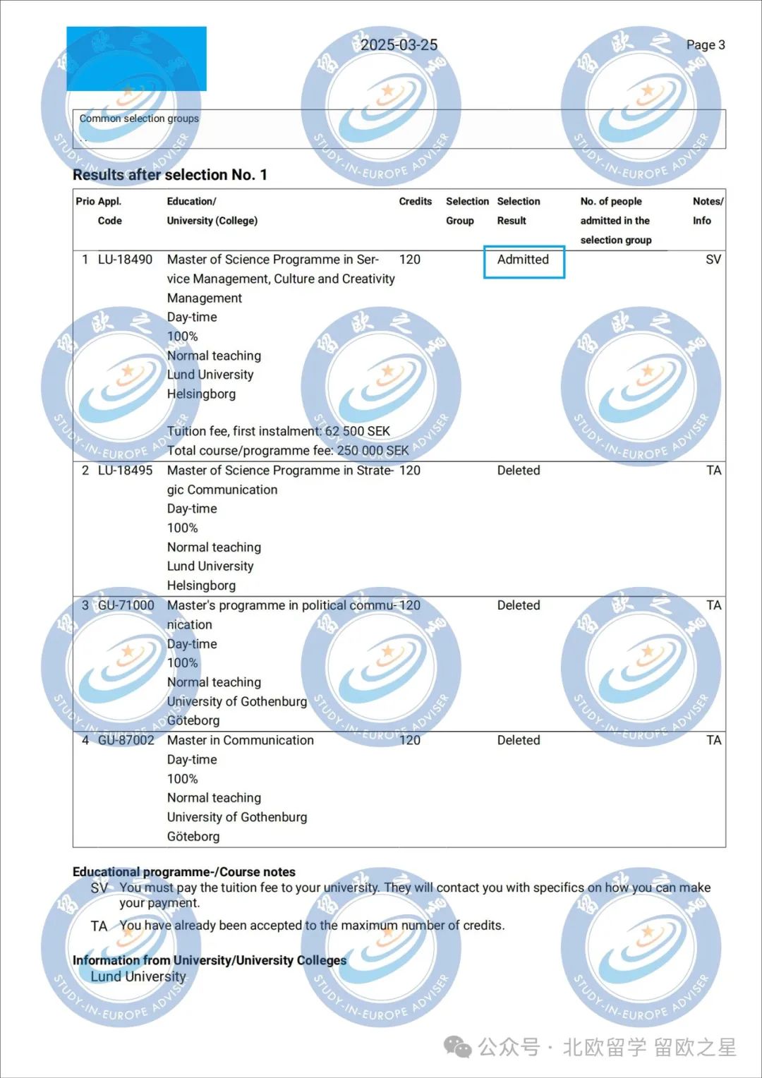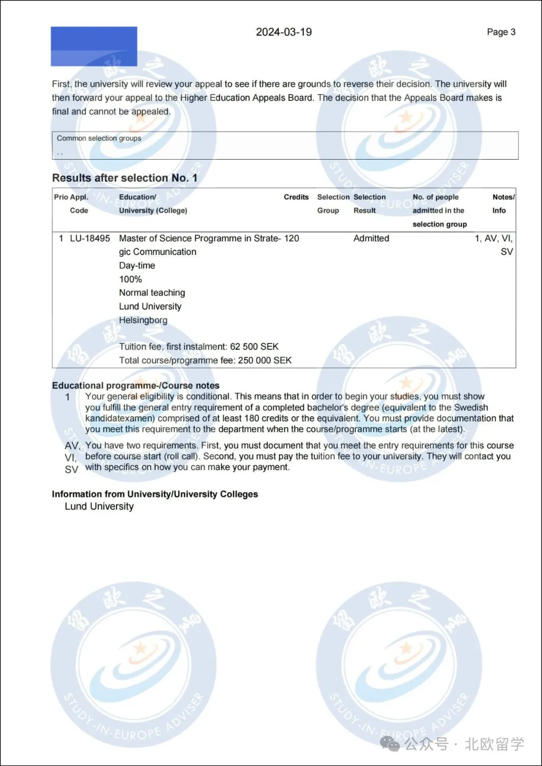 华北电力大学广告学专业;被瑞典隆德大学Master of Science in Strategic Communication录取,学制2年;