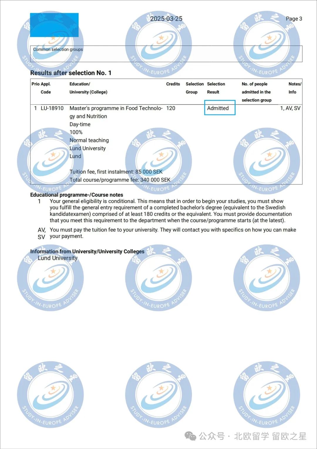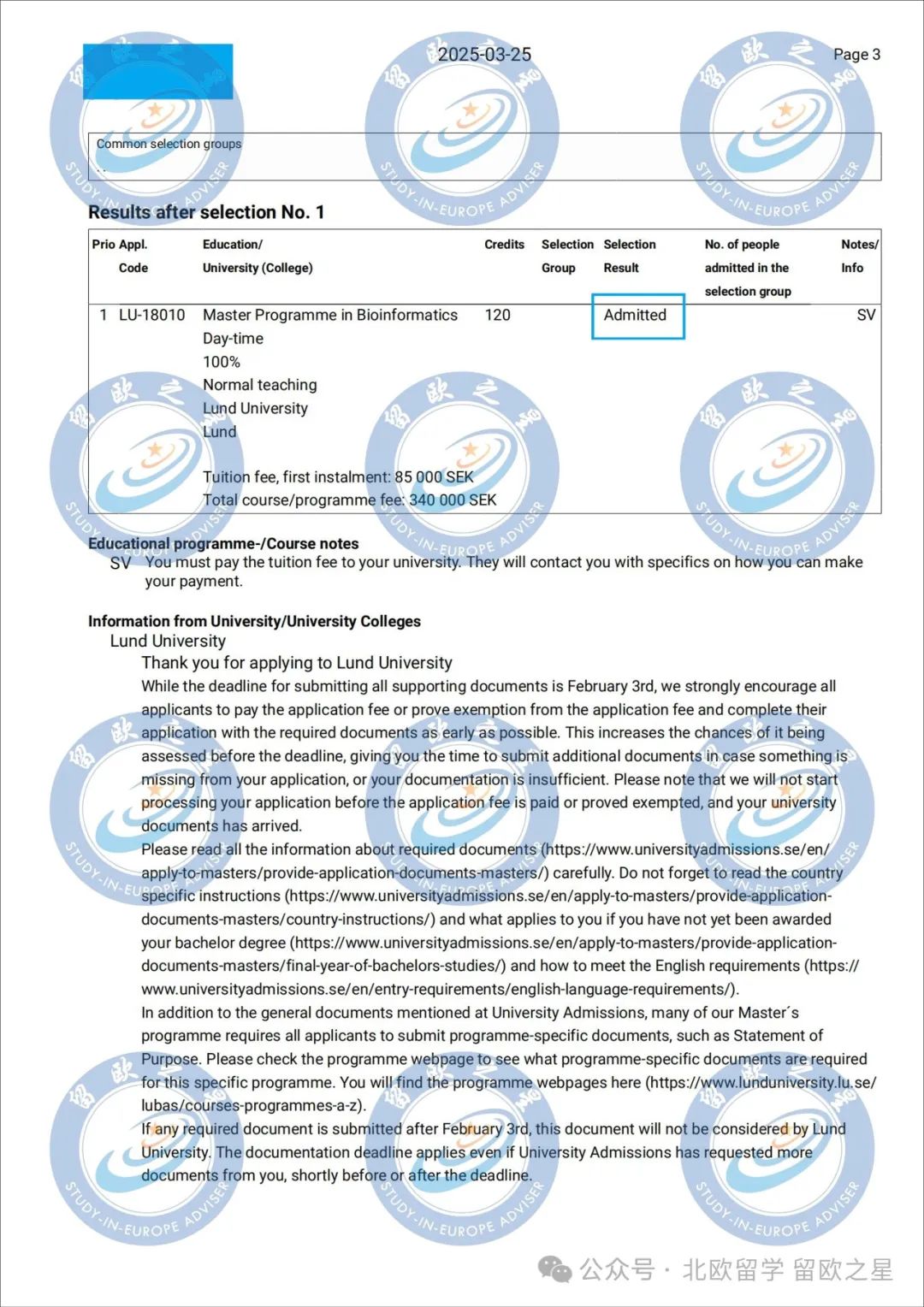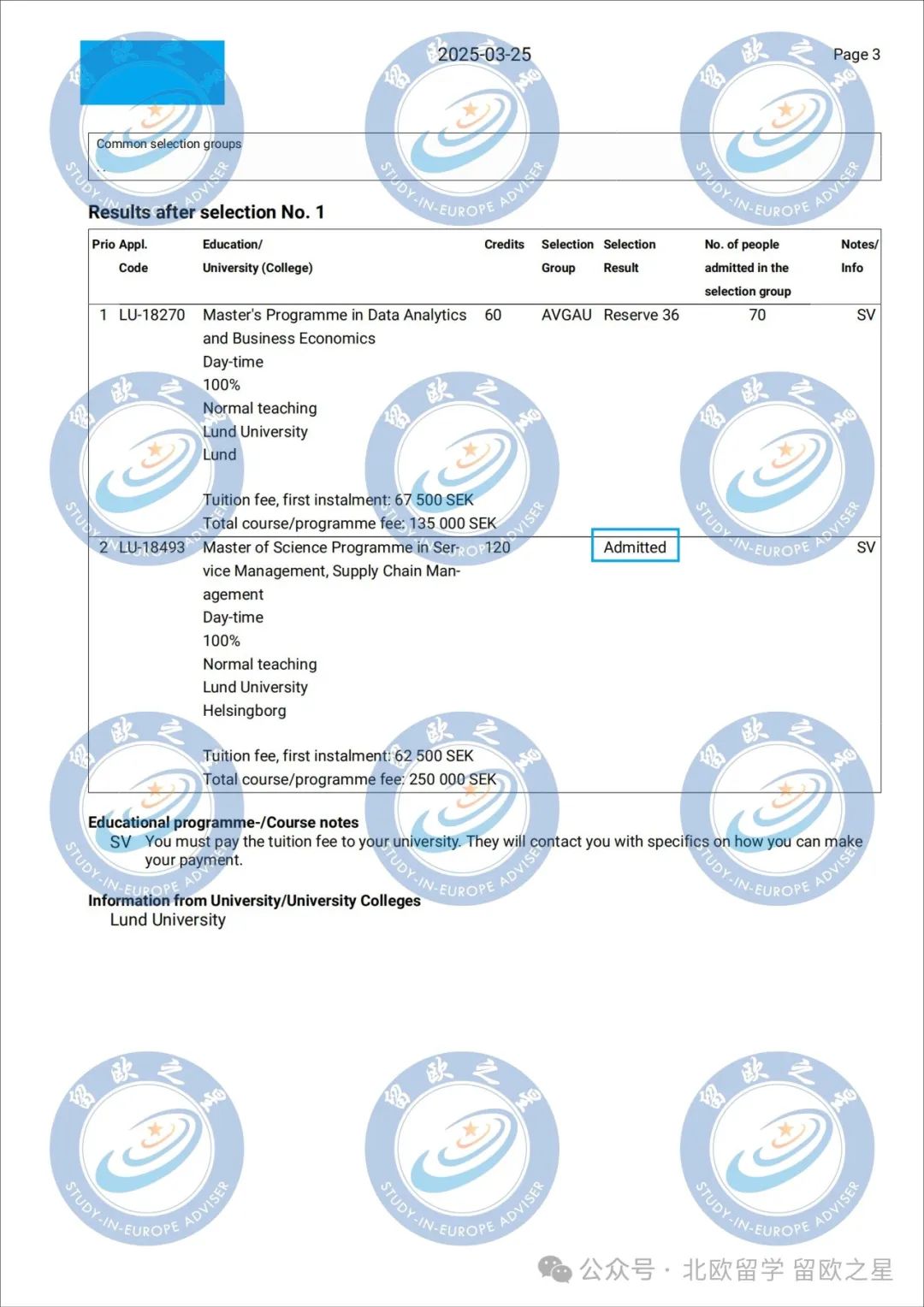 华北电力大学广告学专业;被瑞典隆德大学Master of Science in Strategic Communication录取,学制2年;