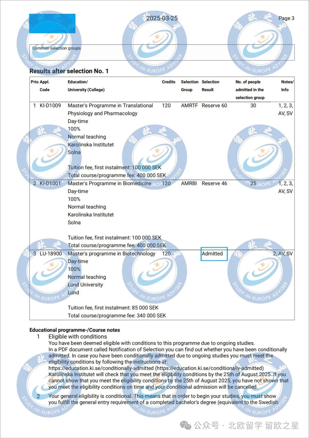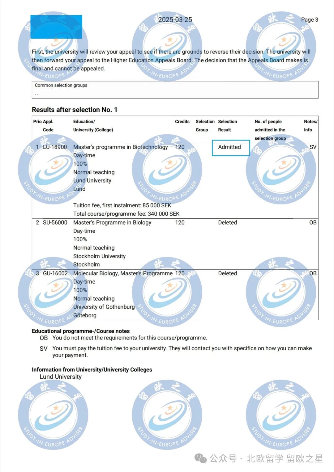 学生背景:华南理工大学 生物技术(强基计划班);GPA&语言成绩:GPA: 3.46/4.0 雅思:6.5;录取院校&专业:瑞典隆德大学 (生物技术硕士);