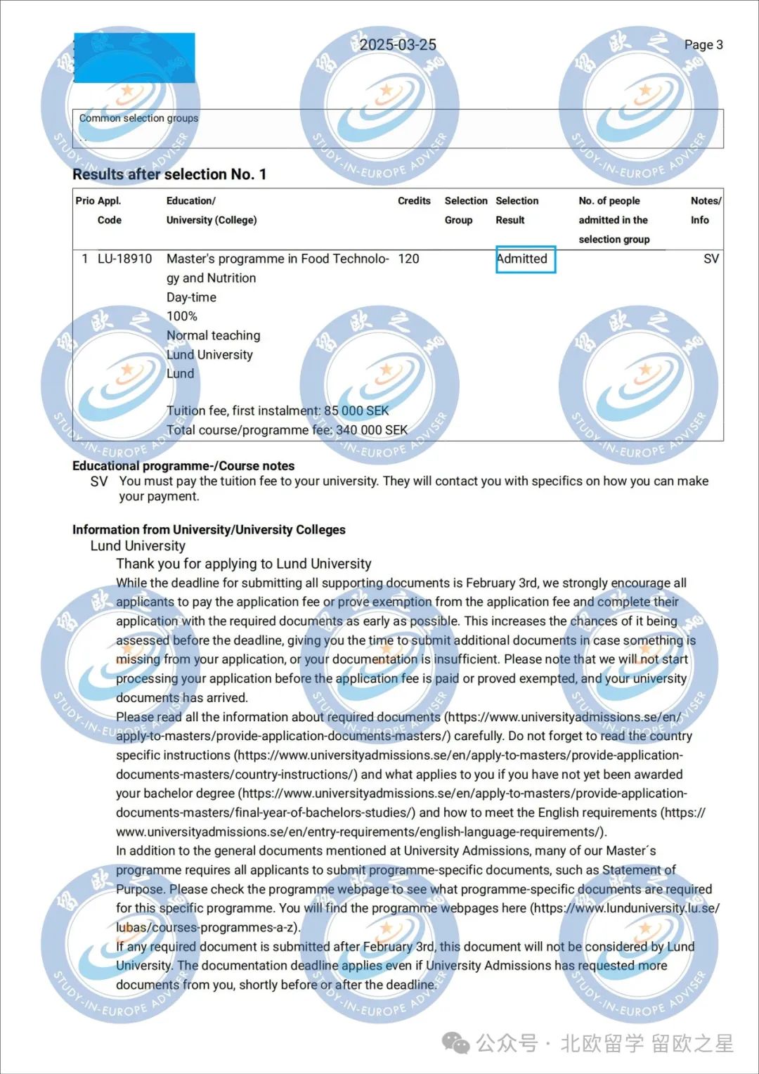 江苏大学 食品科学与工程专业,被瑞典隆德大学食品技术与营养硕士录取,学制2年;