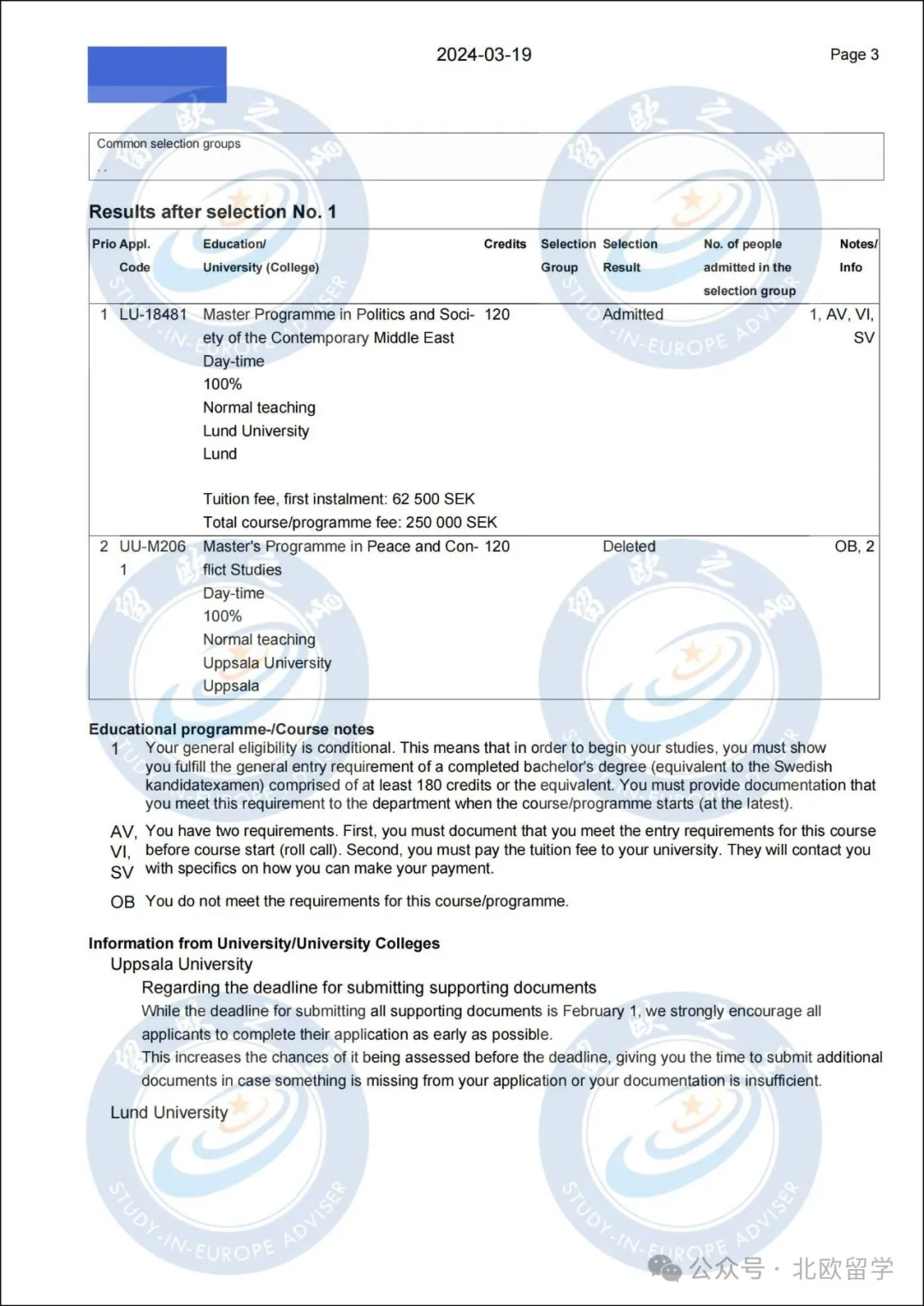 国际关系学院国际政治专业,学士学位,被隆德大学全球研究专业硕士课程录取,学制2年