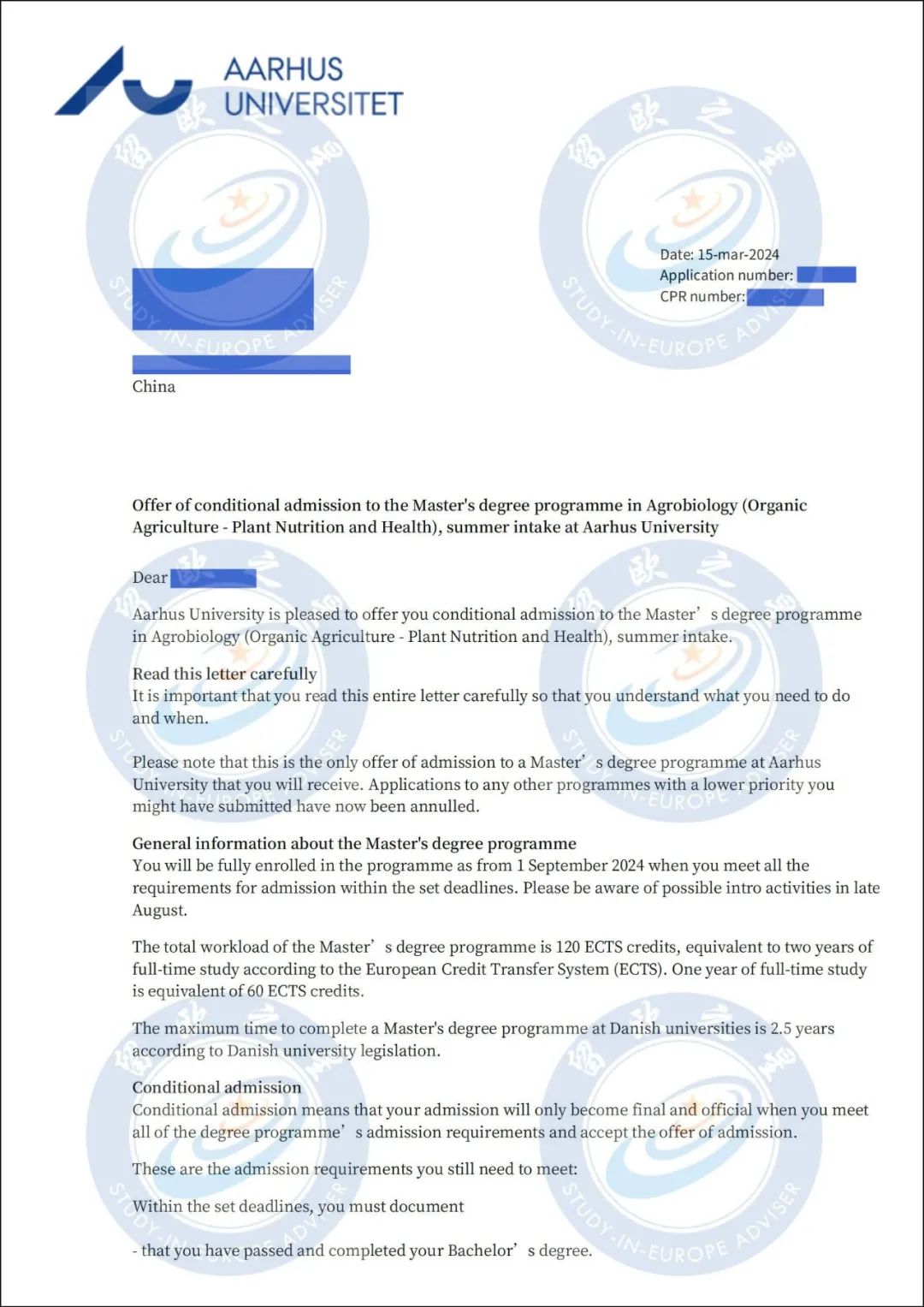 毕业院校&专业:湖南农业大学,植物保护专业;GPA&语言成绩:GPA:83.77,雅思:待考;录取院校&专业:丹麦奥尔胡斯大学,农业生物学硕士-有机农业方向;