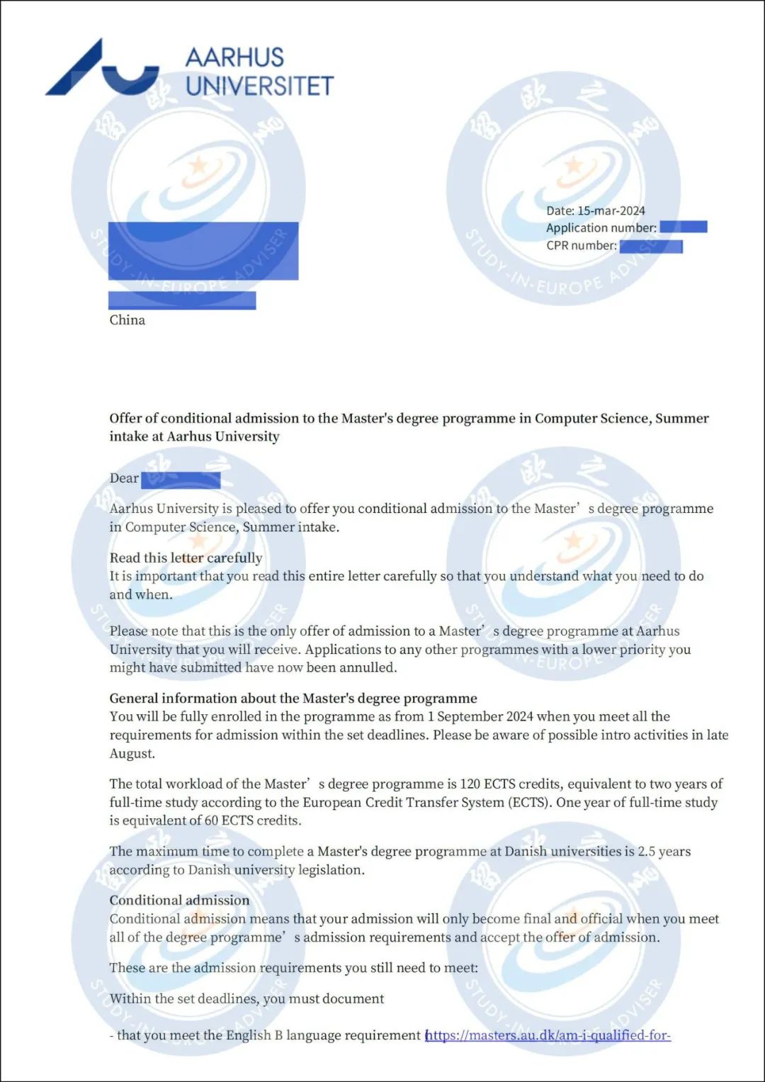 学生背景:武汉大学,计算机科学与技术专业;录取院校与专业:丹麦奥尔胡斯大学(计算机科学硕士);